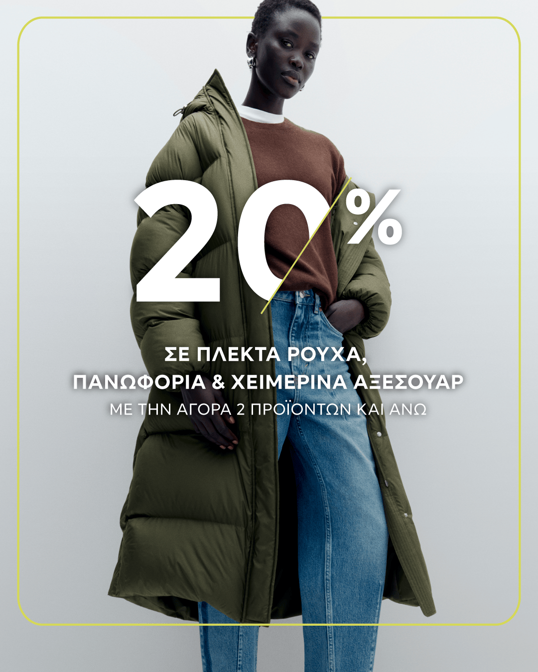 Απόκτησε 20% σε πλεκτά ρούχα, πανωφόρια & χειμερινά αξεσουάρ, με την